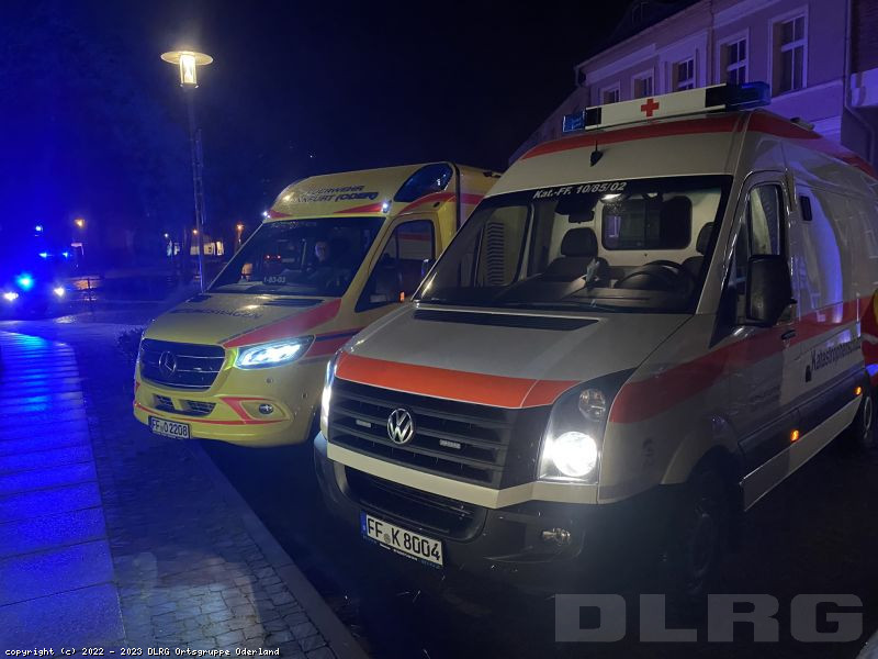 Kurz nach der Alarmierung konnte der KTW-B durch zwei Mitglieder der DLRG OG Oderland besetzt werden und rückte zum Einsatzort aus.