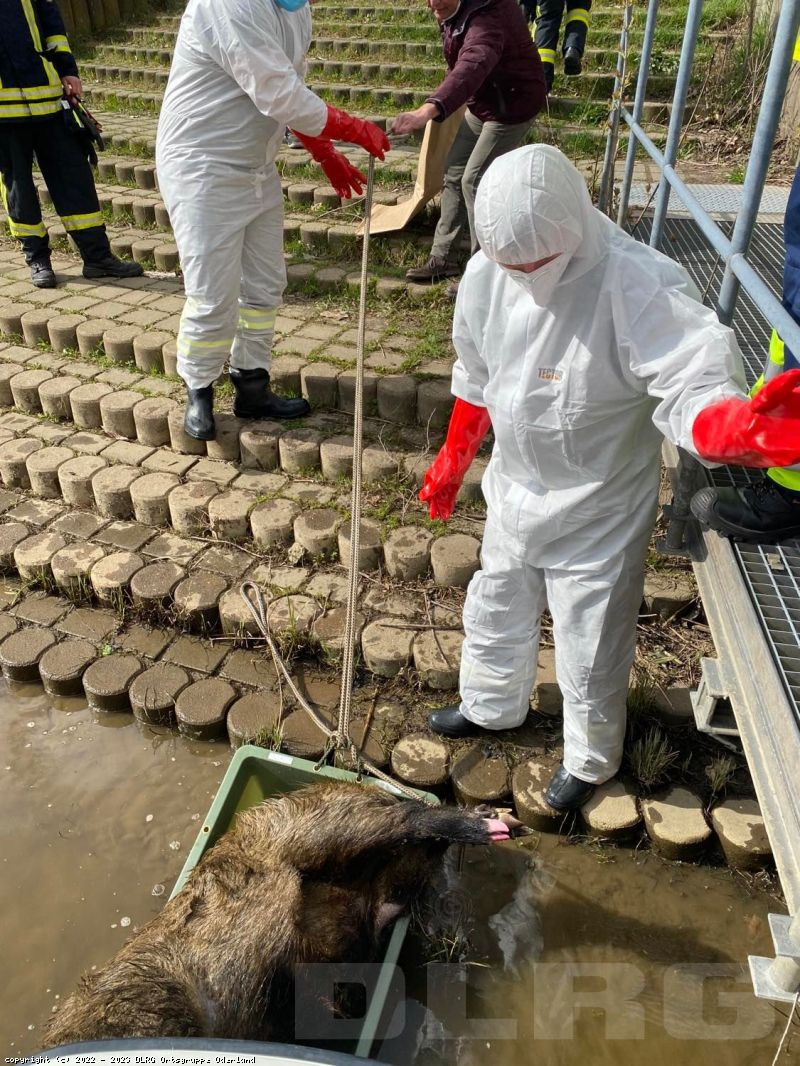 Nach kurzer Suche konnte das verendete Tier gefunden und sicher an Land gebracht werden.